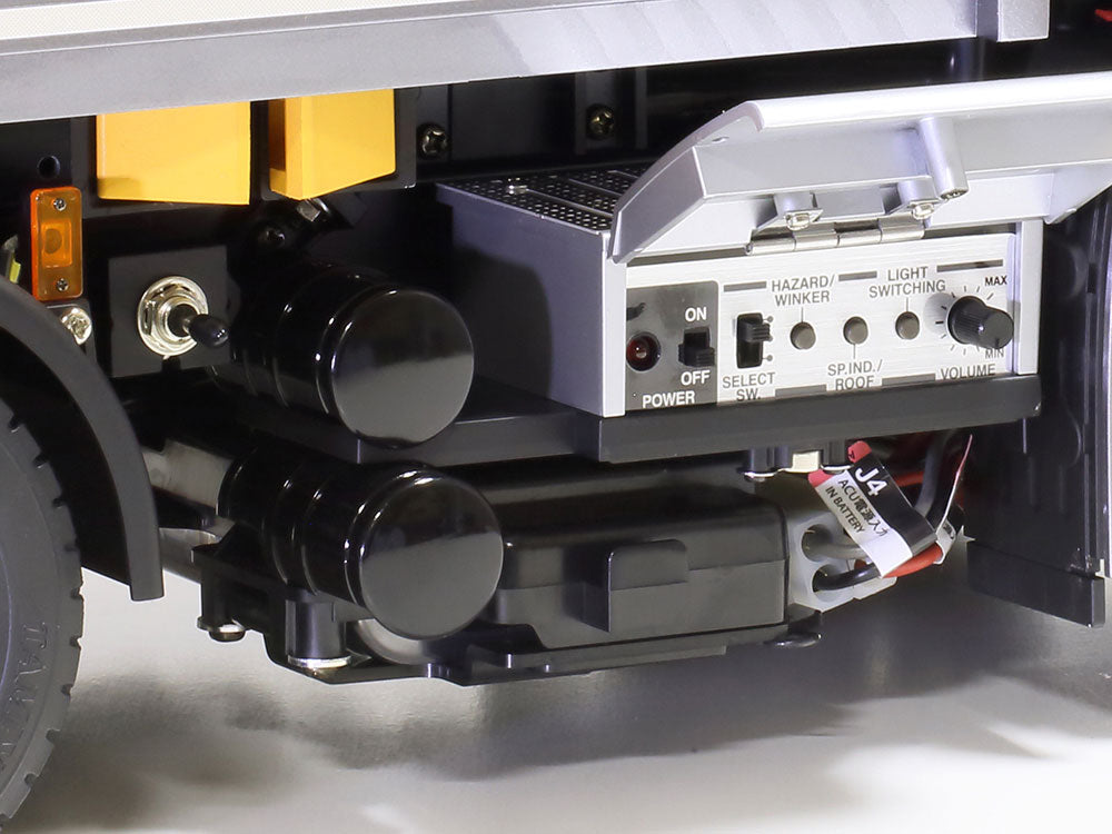This Multi-Function Control Unit brings your 1/14 scale R/C tractor to life, with its recreation of highly realistic sounds, lights and vibration, all of which are coordinated by the MFC-03 unit. Engine sounds were digitally recorded from a real L6 diesel engine, currently the most common unit in European trucks: they cover a number of typical truck sounds from engine start-up to idling and a range of sounds to match model speed, replicating rev sounds with excellent quality. Air sounds are also synchronized with truck operation, as are turn signal, horn, coupler connection/separation, brake sound effects and more! A vibration unit provides incredibly realistic shaking. The MFC-03 also acts as a speed controller that enables smooth running at not only high, but also extremely low speeds and when towing separately sold semi-trailers.