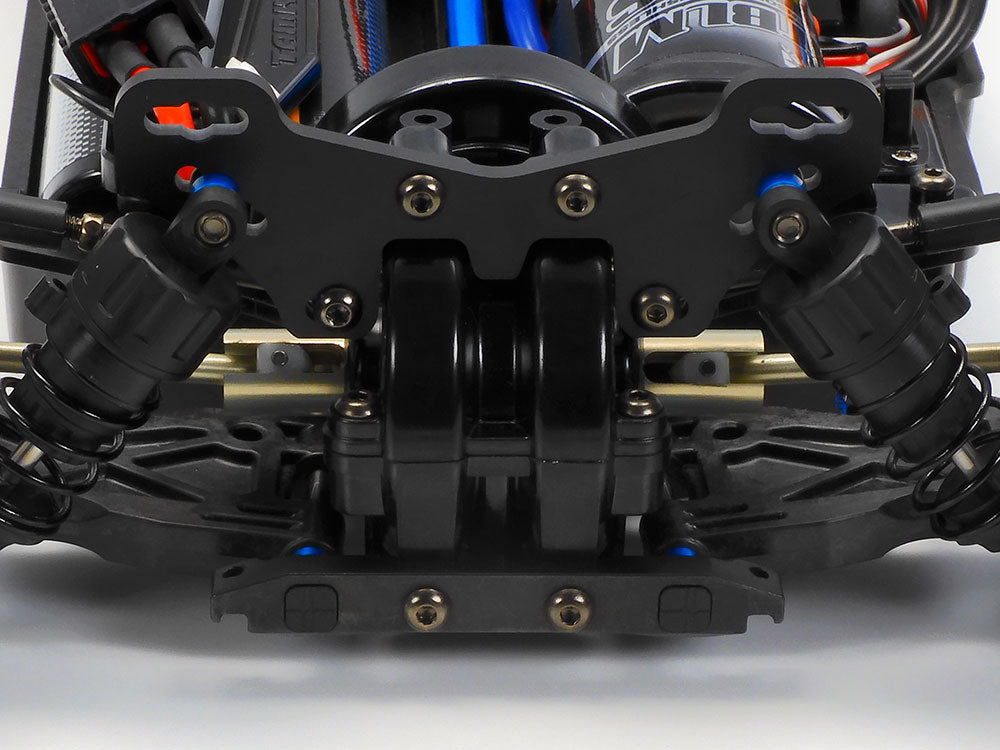This kit sees the versatile beginner chassis TT-02 paired with a host of Hop-Up Options and other parts to raise its racing ability and tuneability. The efficient drivetrain employs a front direct coupling and double cardan drive shafts, with a rear oil gear differential. TRF420 design suspension arms give great feedback during your drive, and the rear suspension can be fine-tuned via its adjustable mount. Its 27T pinion and 68T spur gears give a gear ratio of 6.55:1.